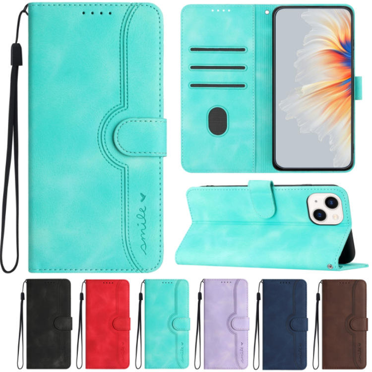 Étui portefeuille en relief coloré avec motif d'impression pour iPhone 14, couverture de téléphone Folio Book pour Samsung S23 S22 avec sangle