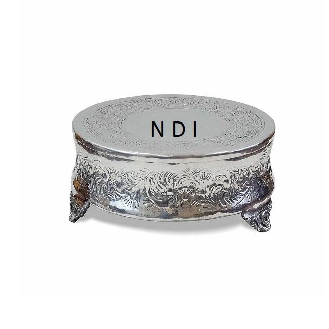 Support à gâteau en aluminium avec design en relief, finition argentée, forme arrondie, pour la décoration de la table des hôtels