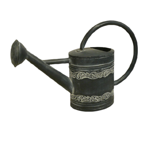 Arrosoir en métal enduit de poudre noire à bordure en relief Look moderne décoratif pour l'extérieur
