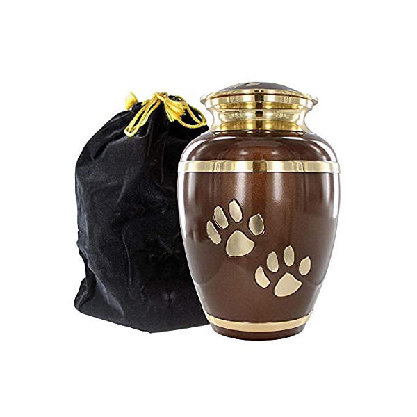 Urne funéraire en laiton et métal de conception gaufrée Urne funéraire de luxe en laiton et métal avec patte finie en émail