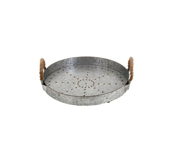 Plateau de service rond en métal galvanisé au design moderne pour ustensiles de cuisine, table à manger, plateau de service avec poignée en corde