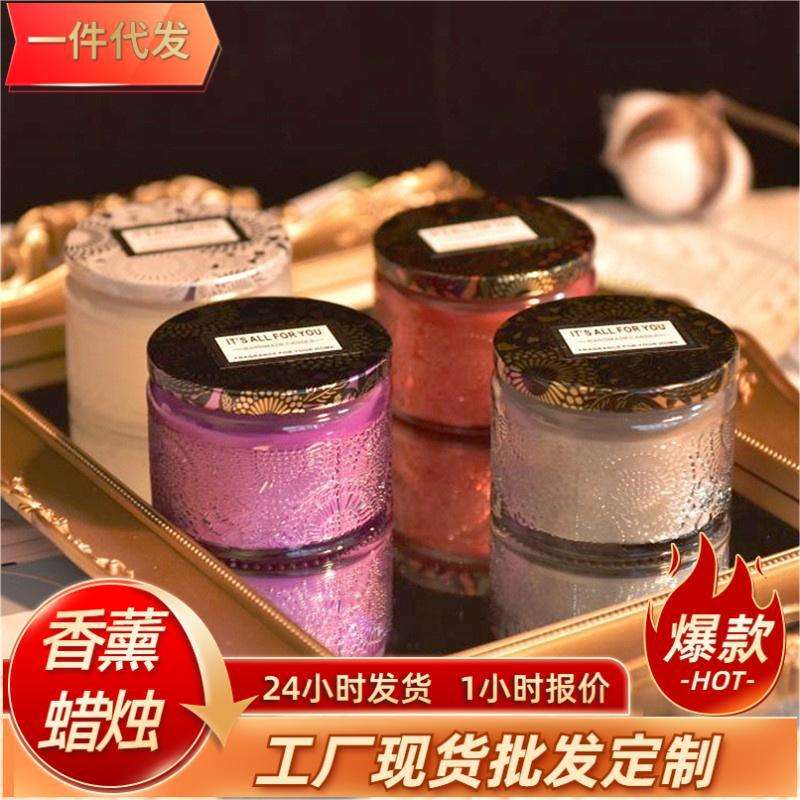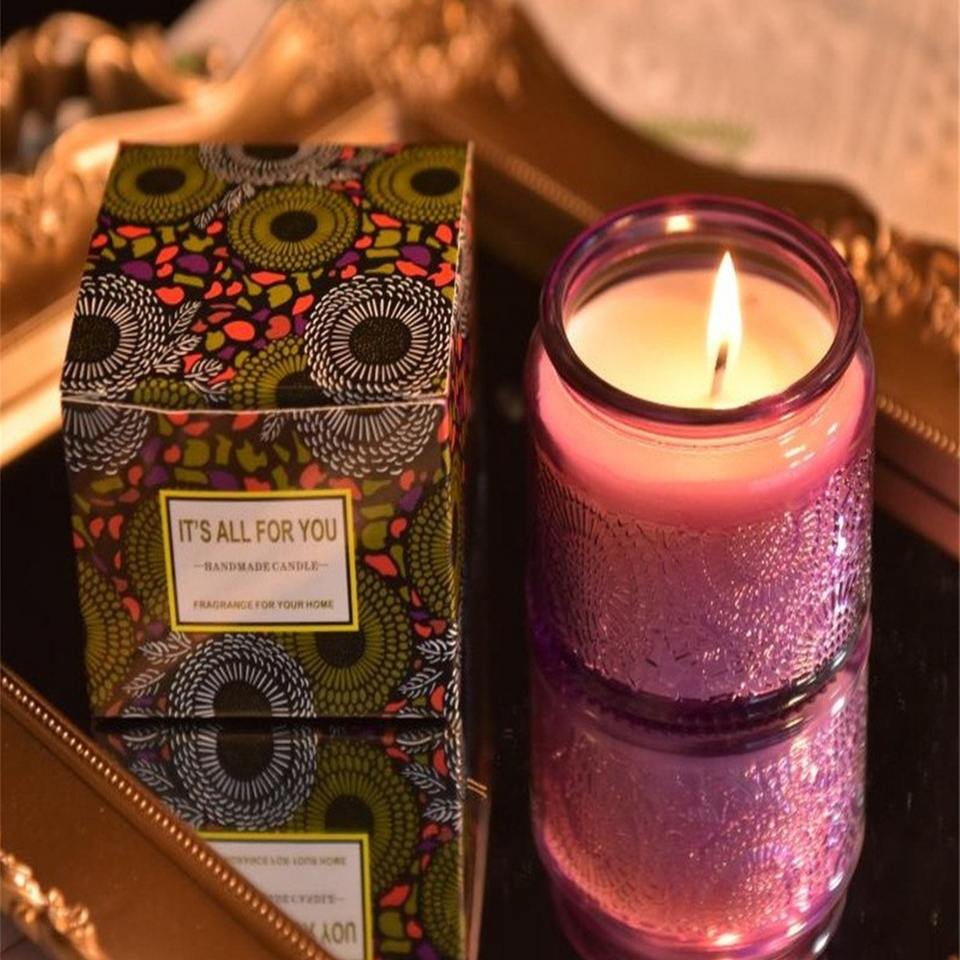 Bougie parfumée en verre gaufré, cylindrique, en cire de soja, faite à la main, parfumée, pour la maison, cadeau