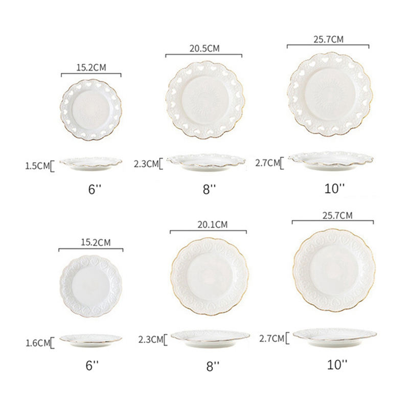 Assiette creuse en céramique gaufrée avec bord doré, pour petit-déjeuner, pâtes, dessert, pain, fruits, plateau de service, vaisselle de restaurant, 20 pièces