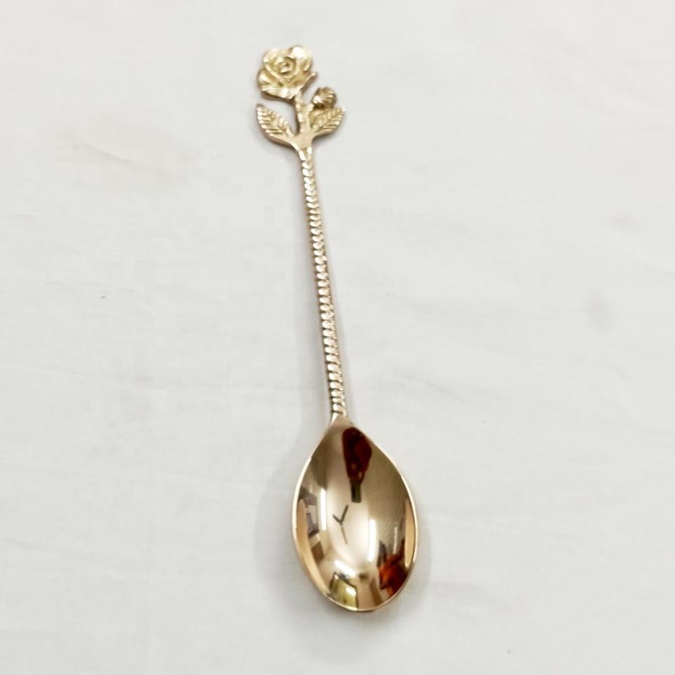 Cuillère en forme de feuilles de palmier en relief, manche fait à la main en laiton poli or cuillère à barre courte avec cuillère en relief en laiton nouveauté