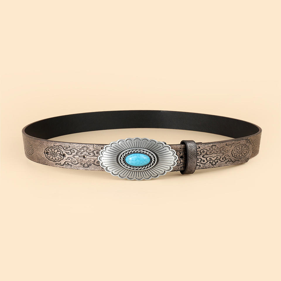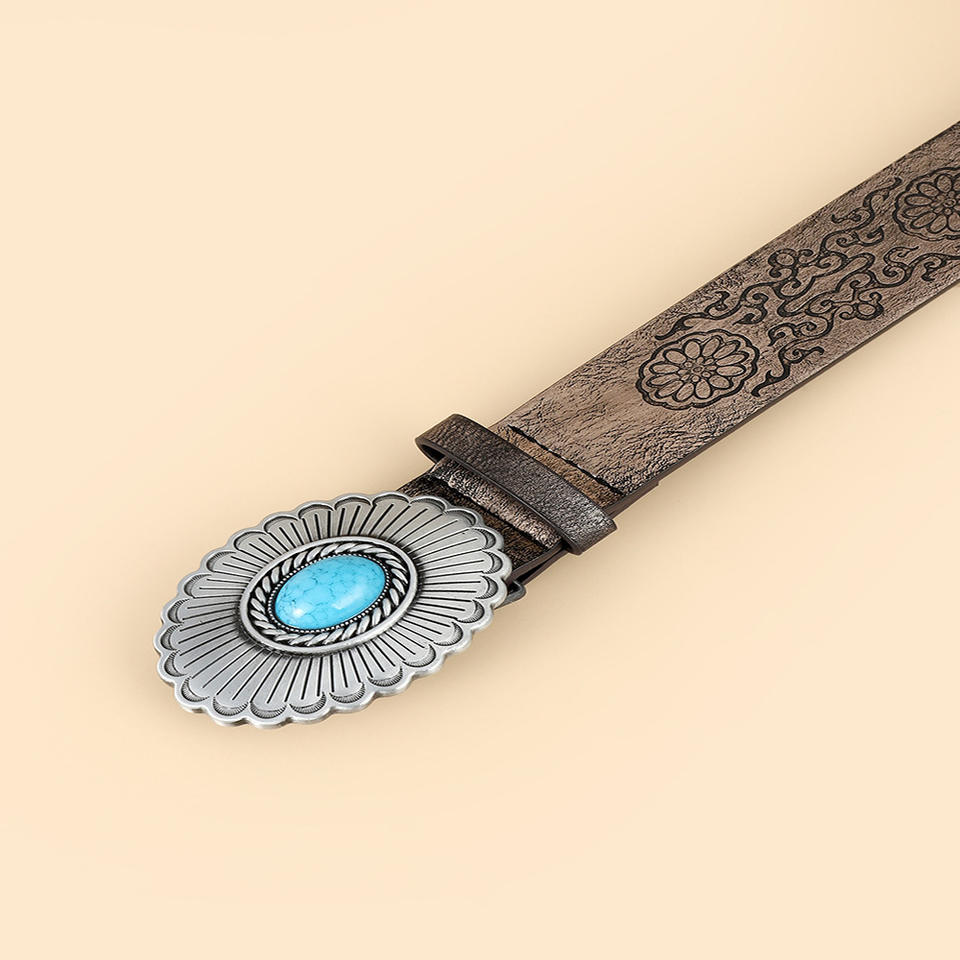 Ceinture large en cuir véritable de style ethnique rétro pour femmes avec cent saphir décoration alliage boucle robe accessoire Pakistan
