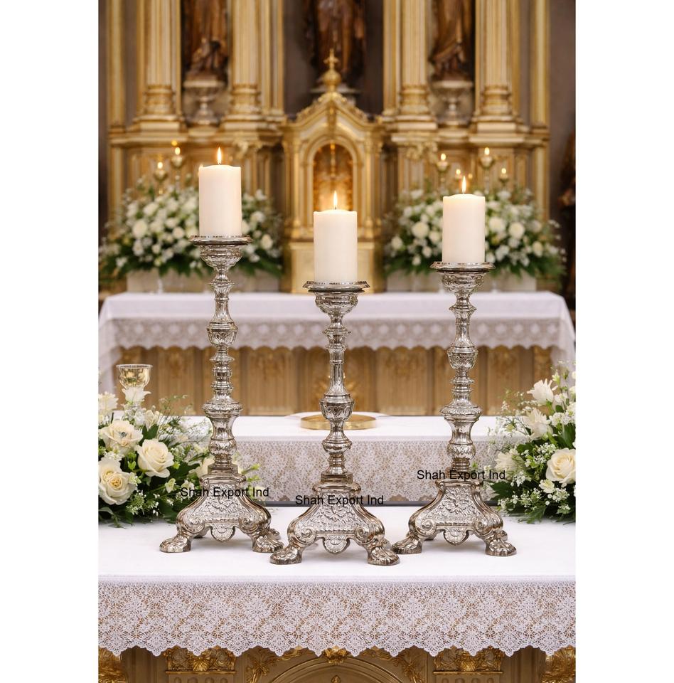 Bougeoir à base de trépied en relief bougeoir d'autel d'église bougeoir d'église religieux en vrac fait à la main