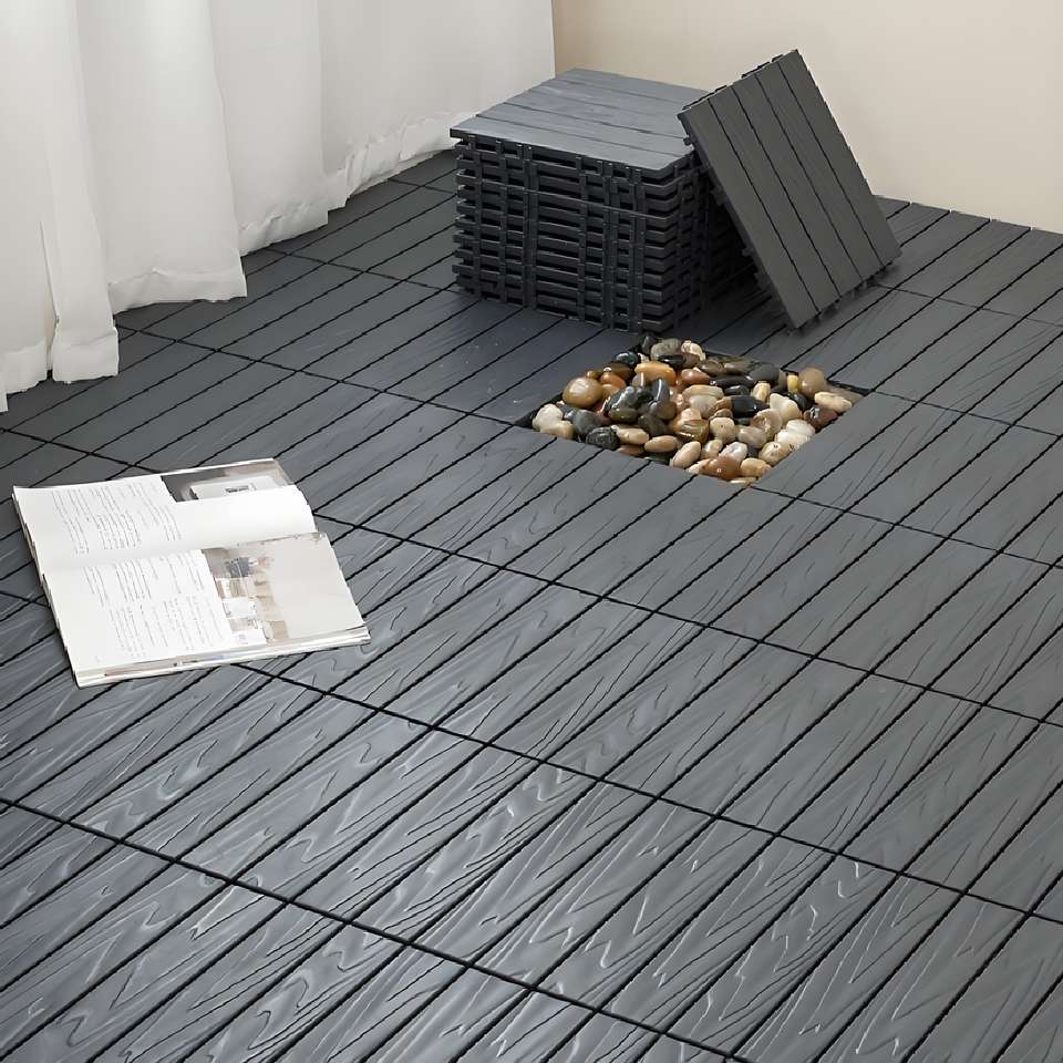 Dalles de sol emboîtables en plastique PP gris gaufré 30x30x2cm, imperméables, pour cour