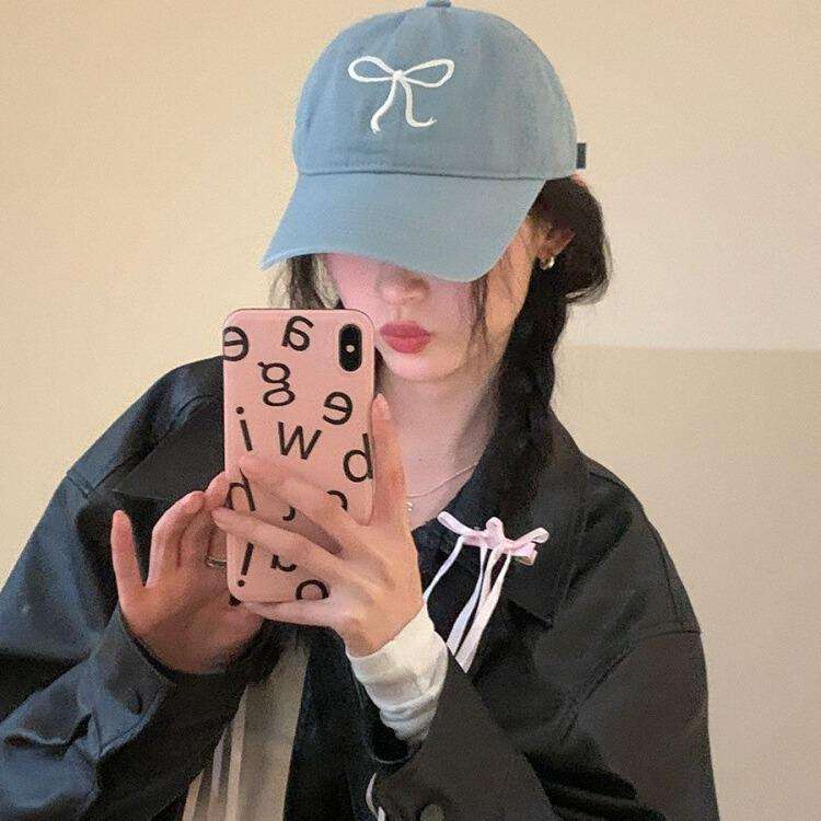 Casquette de baseball 7 panneaux brodée avec nœud pour femme, style coréen, rose mignon, protection solaire respirante, casquette bec de canard