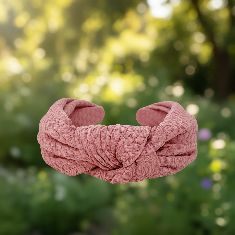 Bandeau noué rose en coton, style doux, pour usage quotidien, accessoire pour cheveux pour femmes