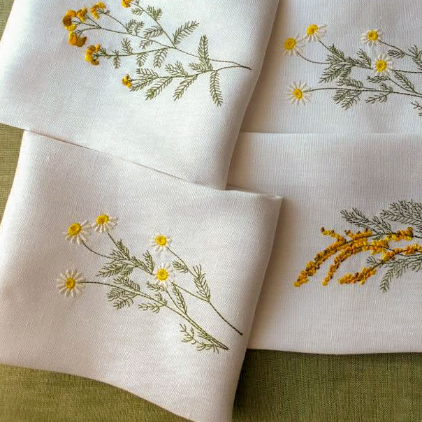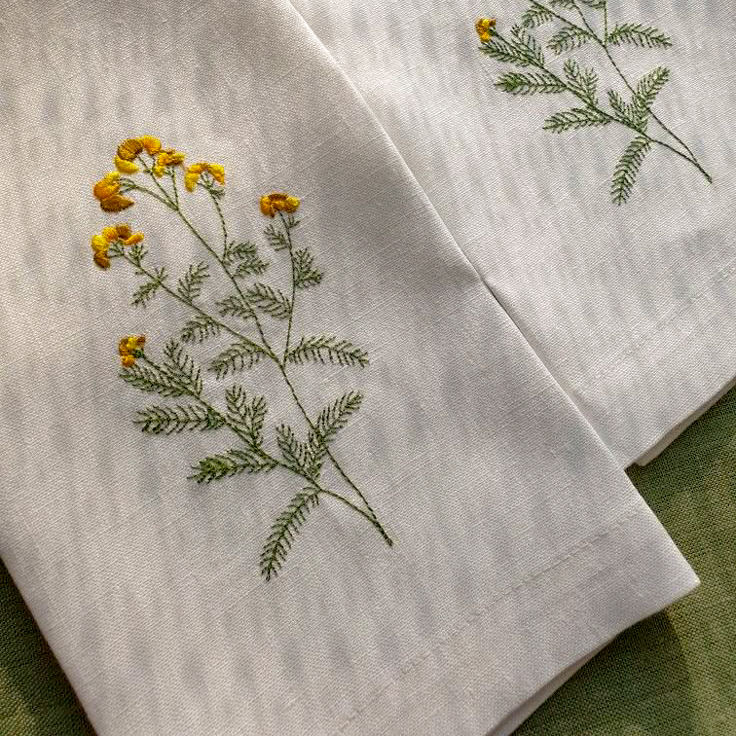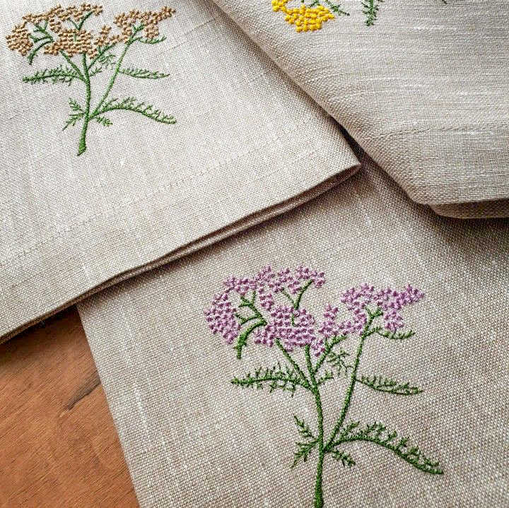 Serviettes de cuisine en coton brodé – Design élégant avec fils, séchage rapide, douces, linge de cuisine durable