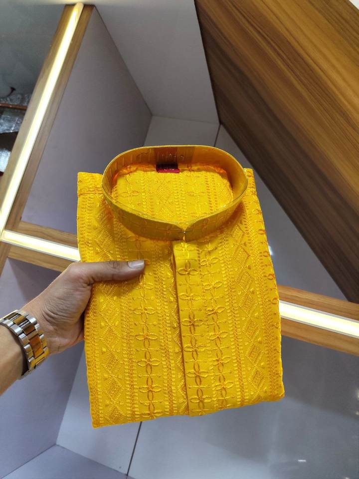 Ensemble Kurta en coton brodé fête de mariage tenue décontractée coton avec miroir travail Kurta pour hommes avec pyjama meilleure qualité