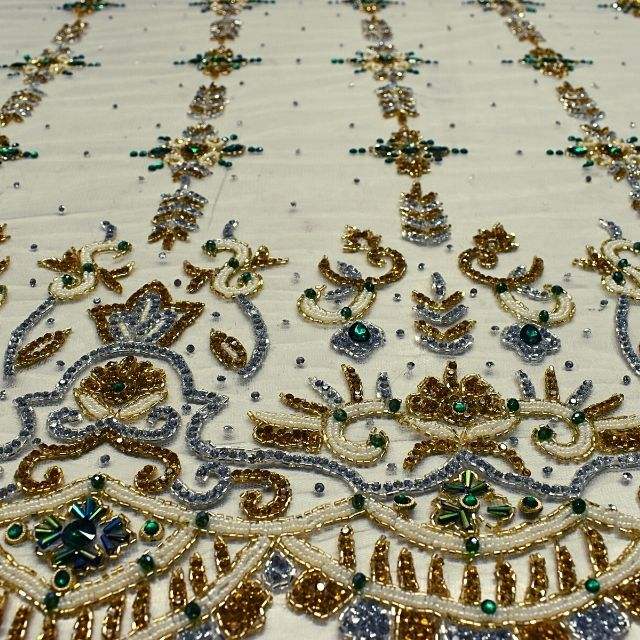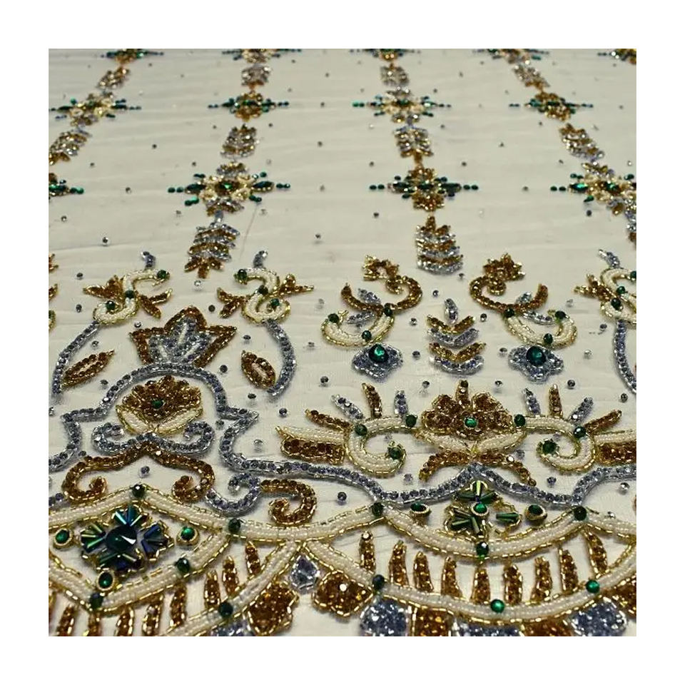 Tissus brodés, robes de luxe en perles, broderie, dentelle perlée à la main, tissu de luxe