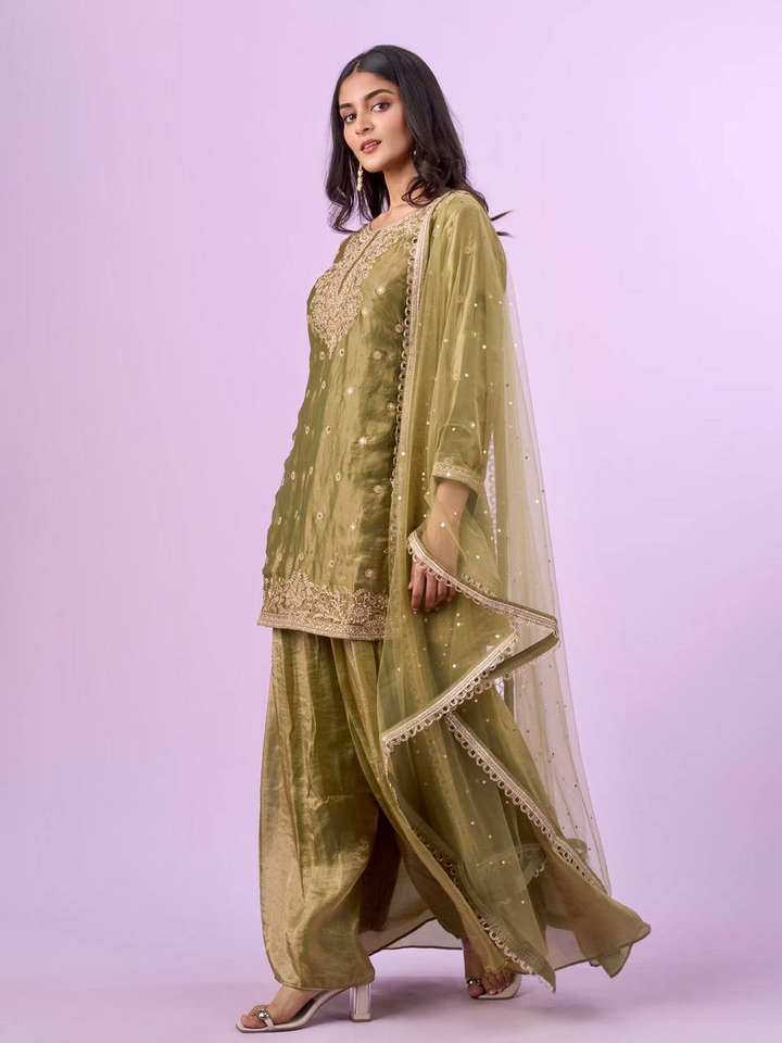 Ensemble Kurti et Palazzo en soie Fandy brodée avec dupatta en filet doux orné de motifs Moti, tenue de soirée ethnique élégante, tailles S à 3XL, nouveauté