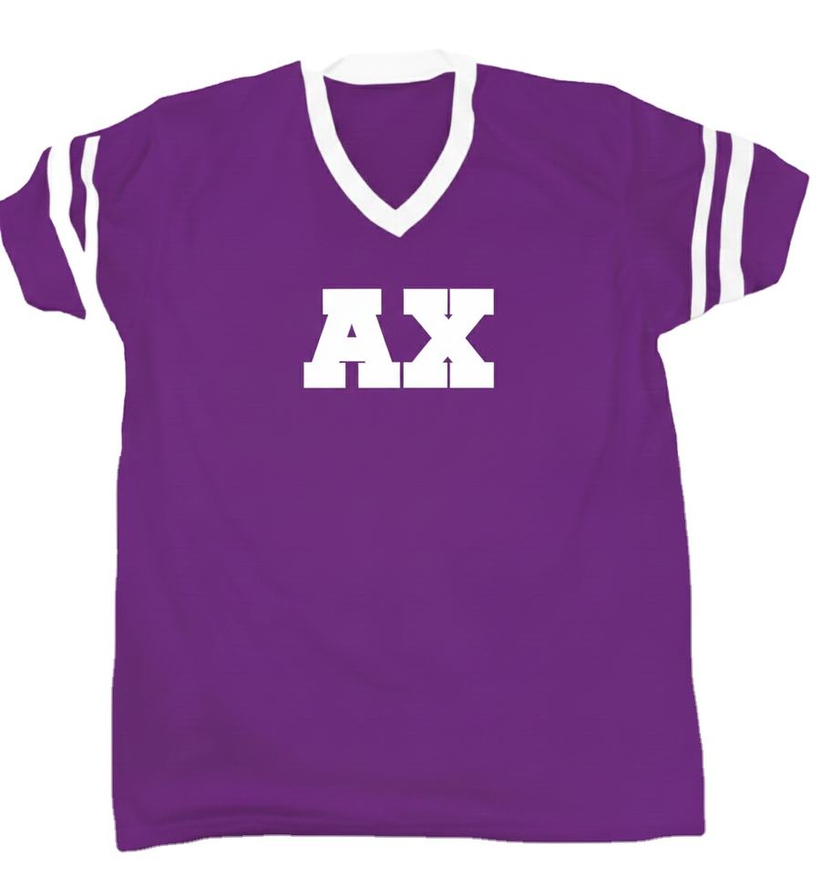 Chemise de Jour de Match de Sororité Alpha Chi Omega avec Lettres Grecques Brodées Style Universitaire Classique Jersey de Sororité AXO Vêtements de Vie Grecque pour Hommes