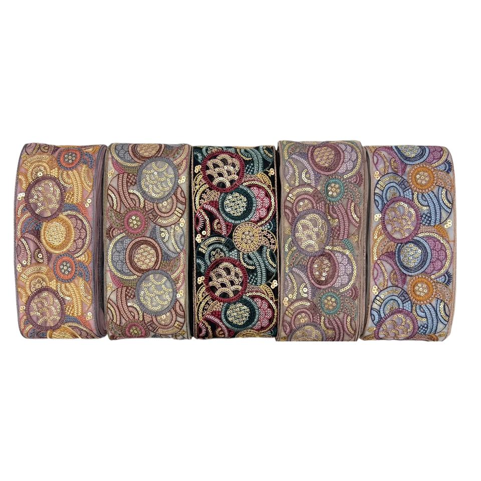 Rubans en dentelle brodés de haute qualité, faits à la main, 100% coton, pour la décoration de col de robe, avec paillettes, à prix de gros pour l'exportation depuis l'Inde