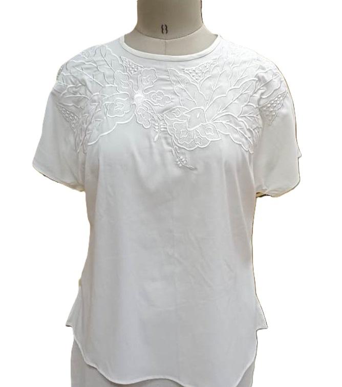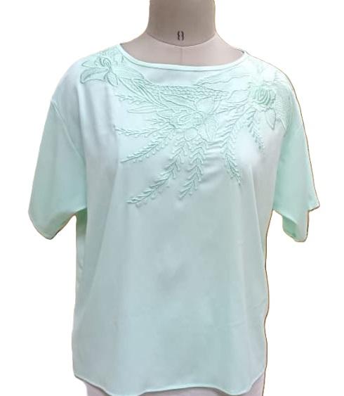 Haut brodé pour femme couleur verte col rond haut d'été léger chemisiers colorés pour dames dernier haut brodé