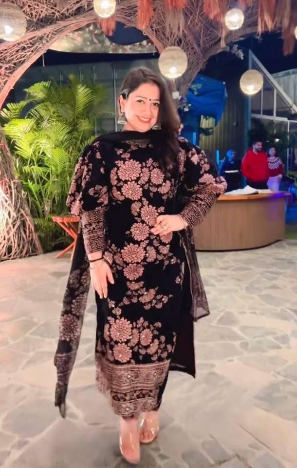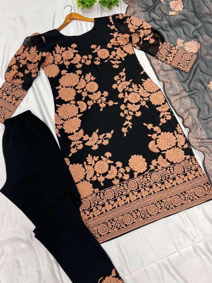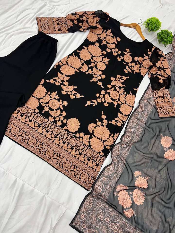 Haut et bas en georgette pure brodés et motifs entièrement cousus Top avec bas et impression numérique Dupatta Heavy Designer Suit