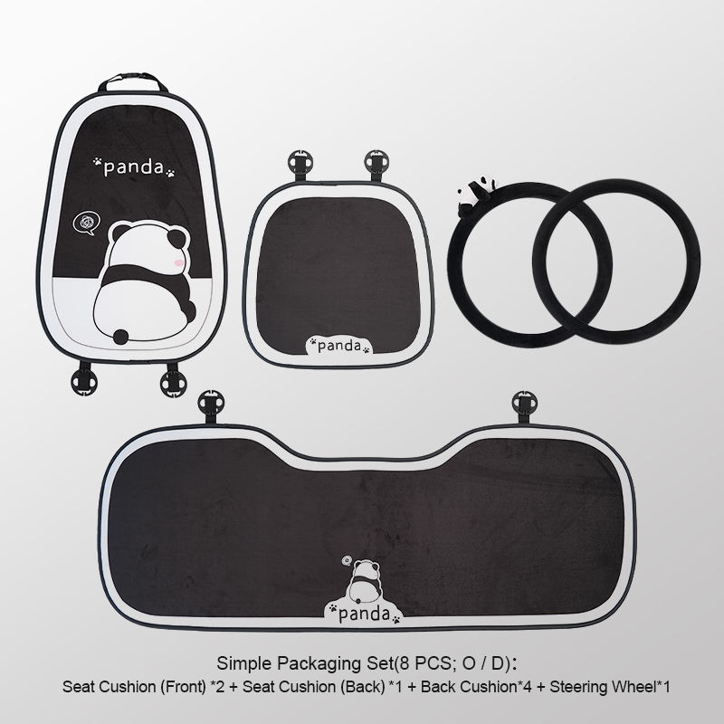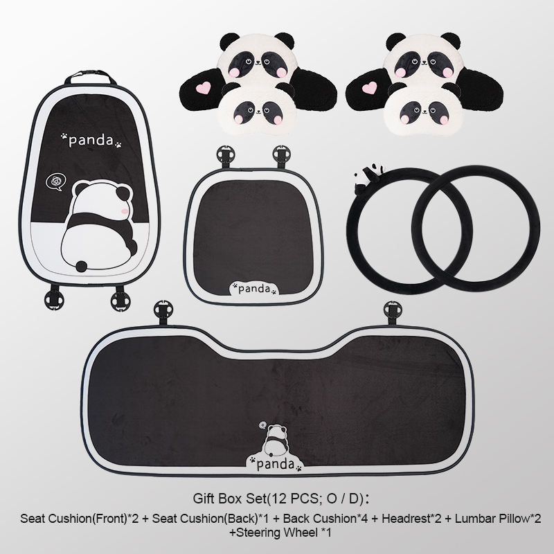 Coussin de siège de voiture en peluche style dessin animé panda brodé et ensemble complet d'accessoires intérieurs pour printemps/automne/hiver, compatible avec la plupart des modèles de véhicules