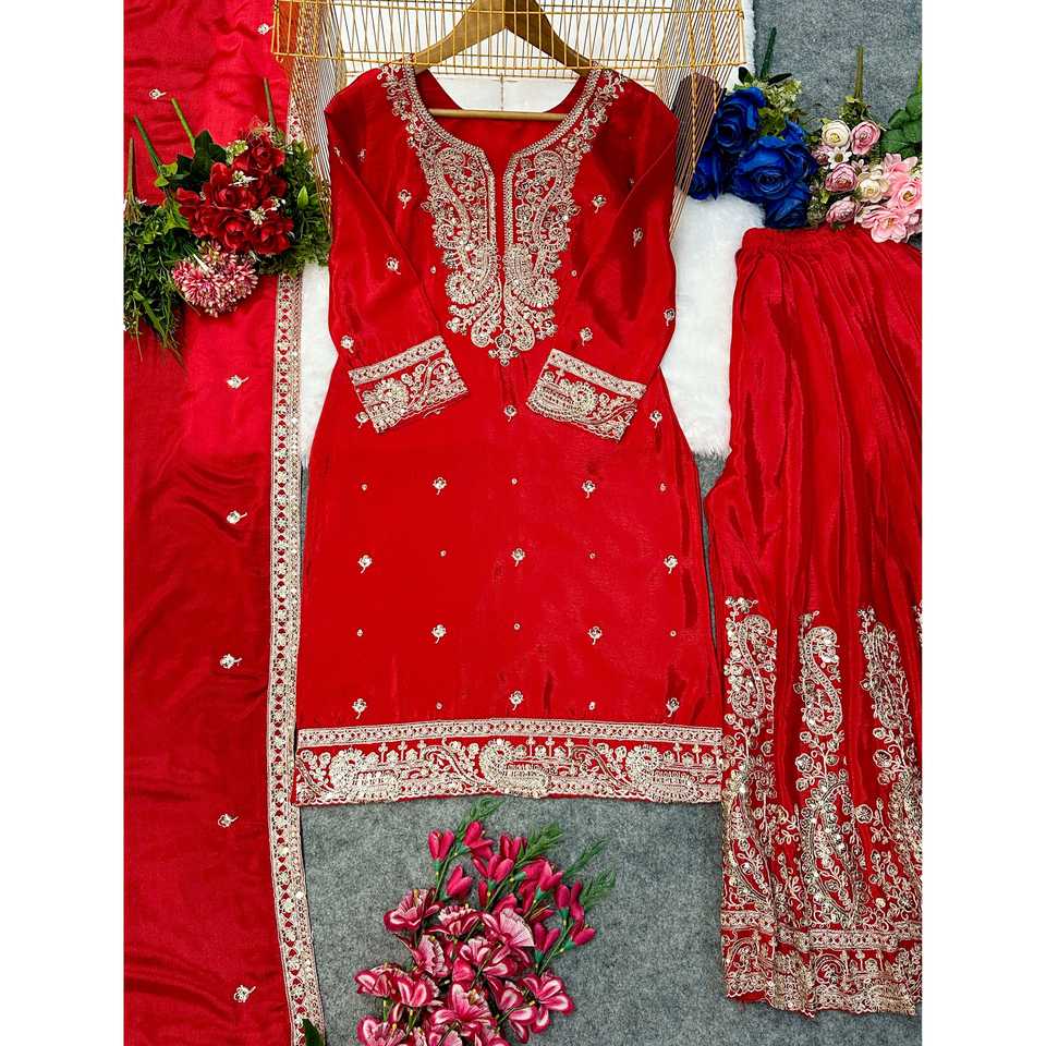 Embroidered Party Jumpsuit with Sarara and Dupatta for Special Occasions