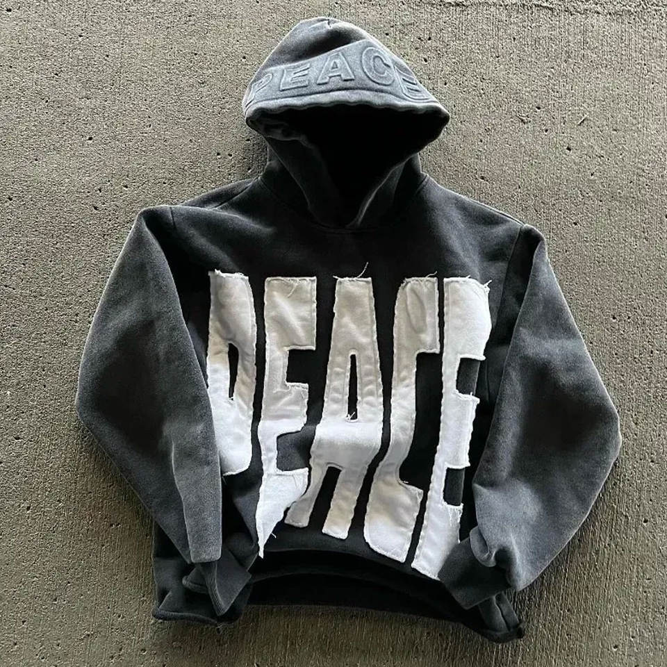 Sweat à capuche pour homme avec patch brodé et design imprimé numériquement, effet vieilli, broderie cousue à la main, personnalisable, respectueux de l'environnement