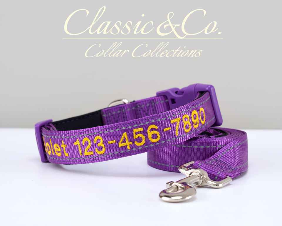 Nom d'animal brodé, collier réfléchissant réglable personnalisé avec laisse pour chiens, taille S/M/L/XL en plusieurs couleurs