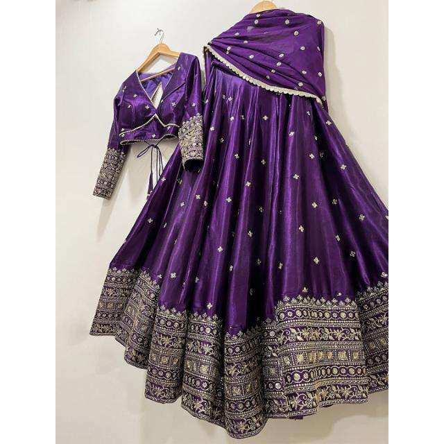 Ensemble Lehenga Choli Dupatta en soie chinon semi-cousu brodé réversible pour les occasions de fête et les tenues décontractées Code Renuka
