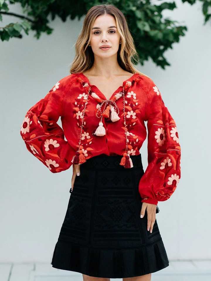 Embroidered Sleeves ODM Fashion for Office Wear From India Vintage Ukrainian Vyshyvanka Blouse with Button Front and Geometric