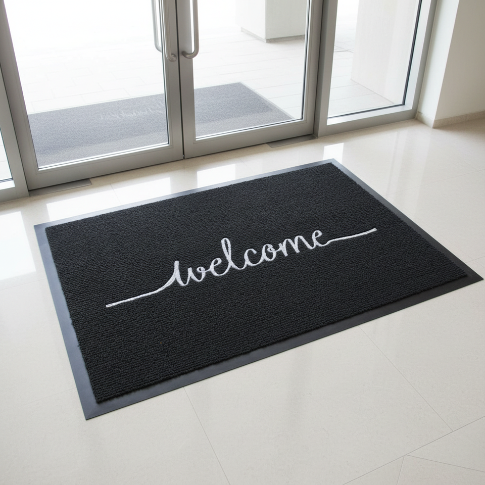 Paillasson rayé brodé, tapis à double nervures rayées, paillasson d'entrée en PVC, tapis de porte en polyester