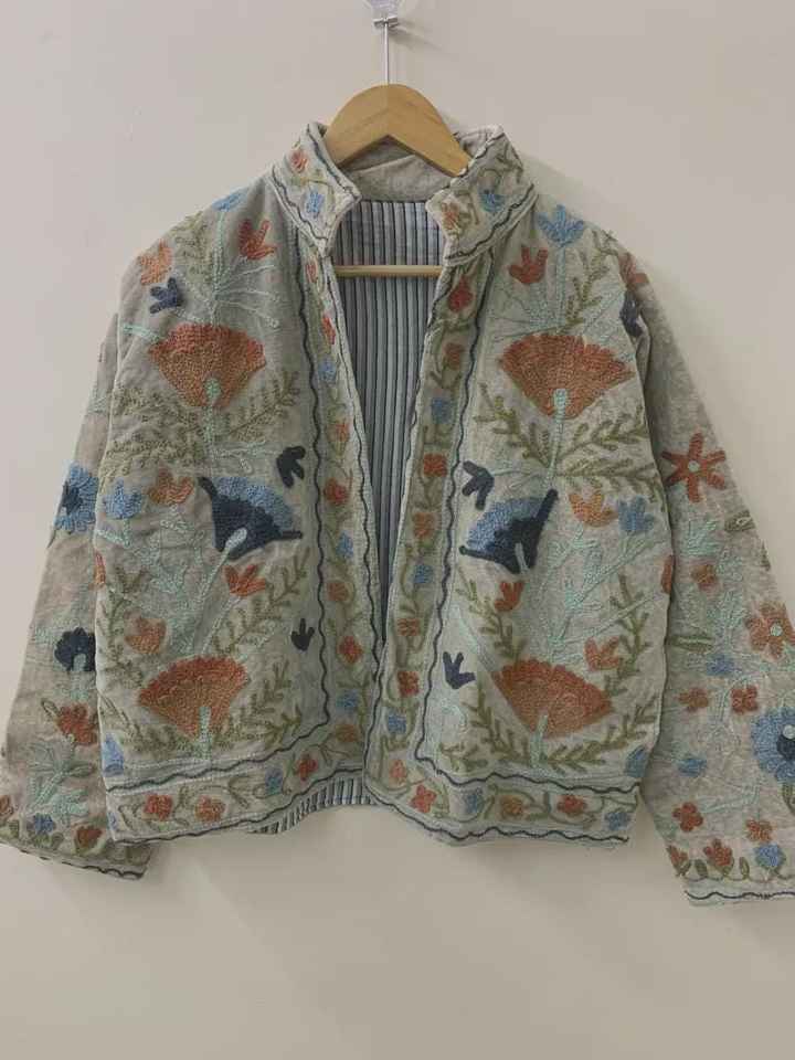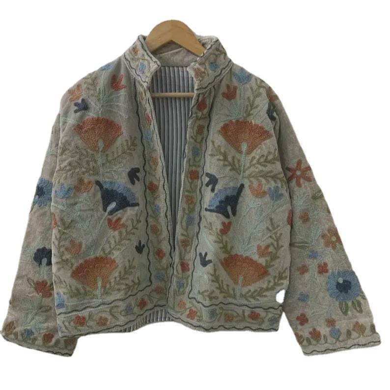 Veste courte en velours brodée Suzani, veste courte de festival, veste unisexe pour femme, cadeau pour femme, boléro de mariée