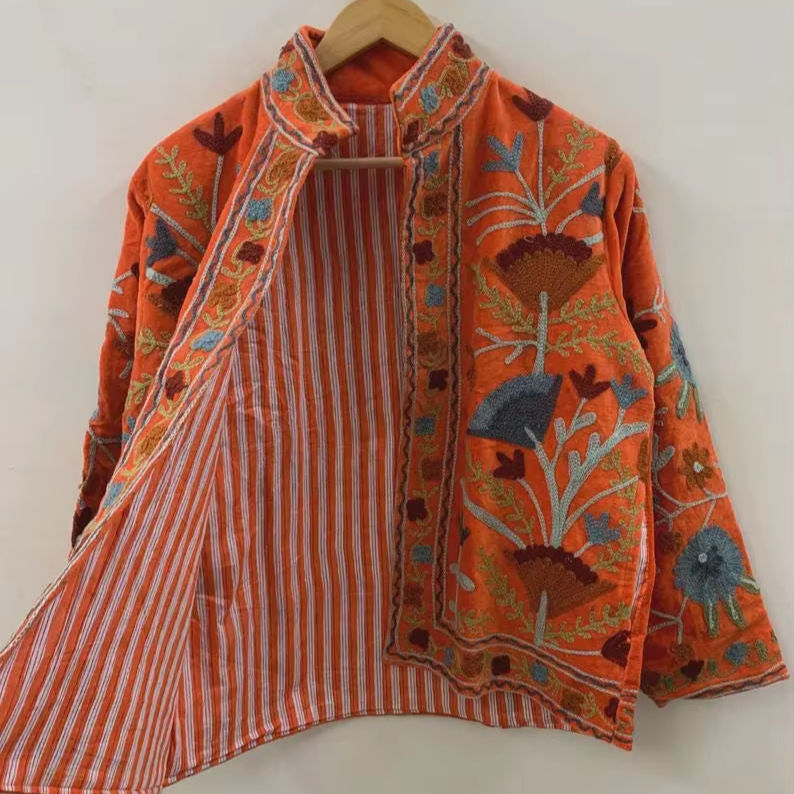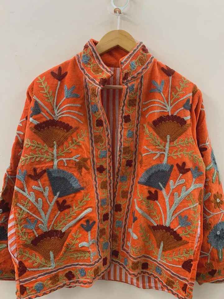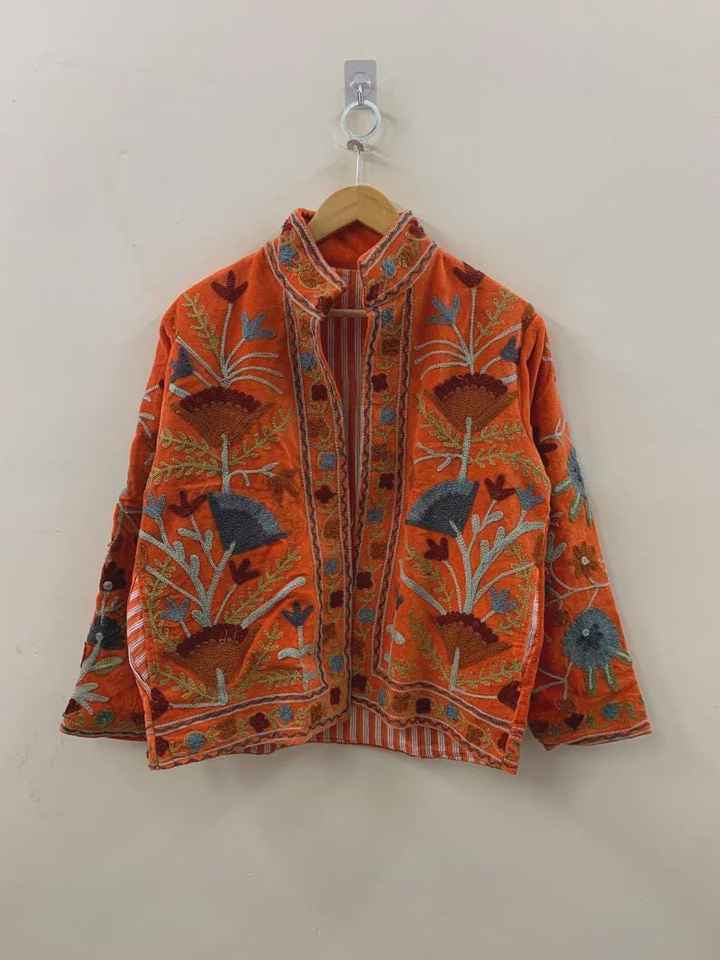 Veste courte en velours brodée Suzani, veste d'extérieur tendance, blazer en velours, veste unisexe, cadeau pour femme, boléro de mariée