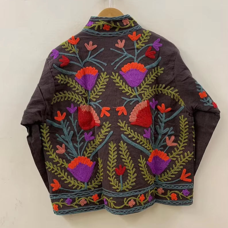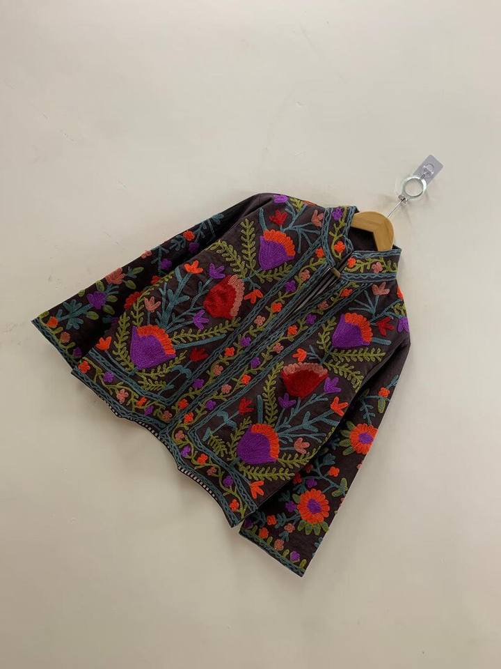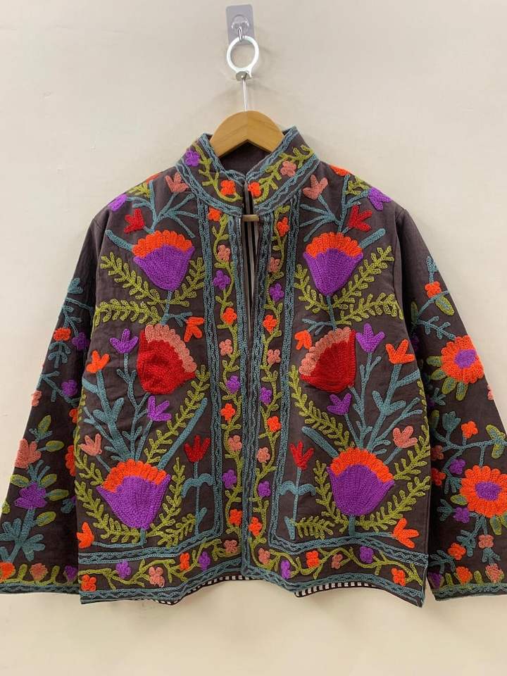 Veste courte en velours brodée Suzani, veste d'extérieur tendance, blazer en velours, veste unisexe, cadeau pour femme, boléro de mariée