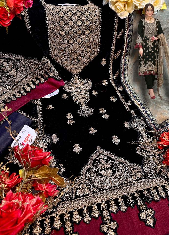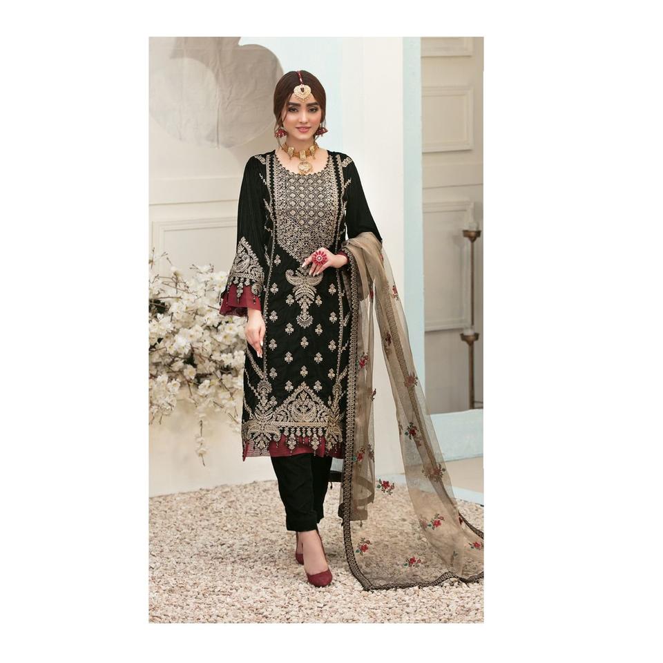 Salwar Kameez brodé en dentelle fantaisie à quatre côtés pour femmes, vêtements de fête et de mariage du fournisseur indien