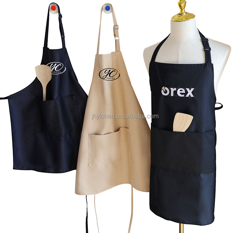 Tablier en toile brodée avec poches, personnalisable, facile à nettoyer, tablier en toile de coton à motifs personnalisés