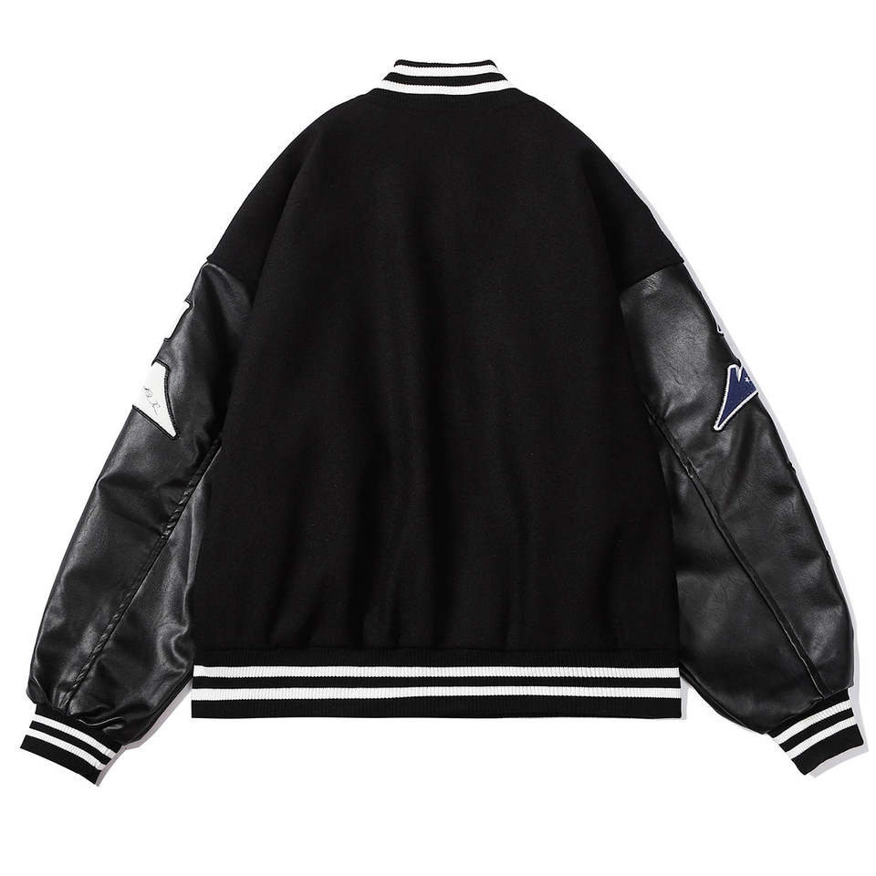 Veste bomber varsity en cuir pour homme, avec broderie chenille, patchwork, lettres personnalisées, style aviateur