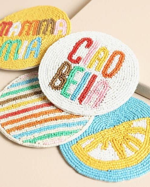 Embroidery Coasters with Beads Hand Stitched Coasters Boho Home Accessory beaded drink coaster