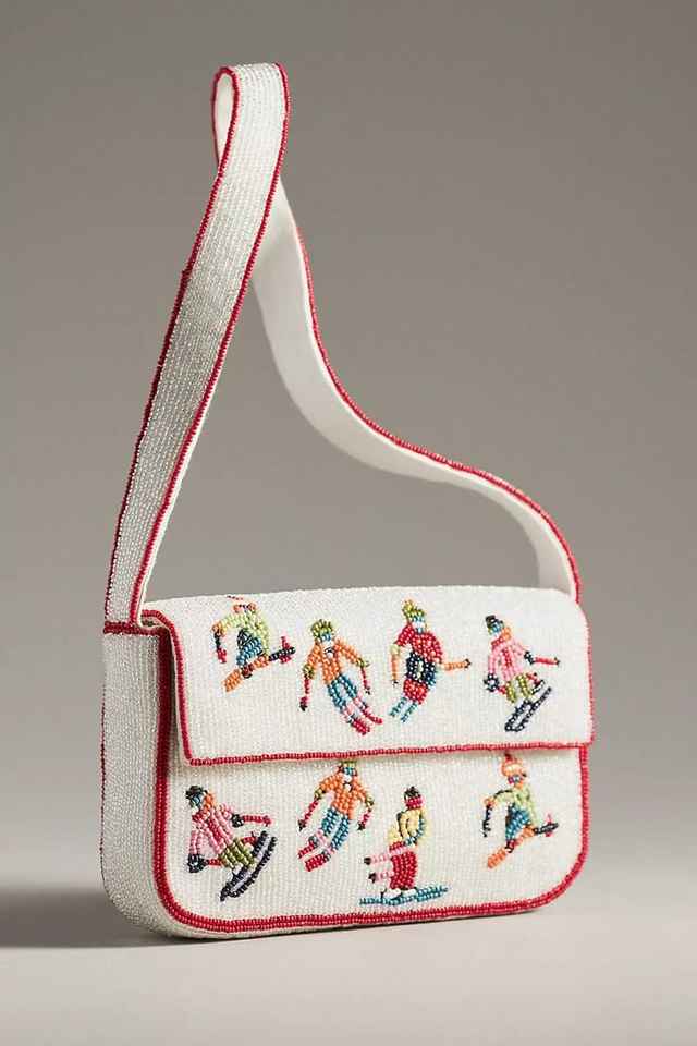 Porte-monnaie brodé avec sangle ceinture, perles de rocaille, léger, forme carrée, couleur personnalisable, design fait main, logo personnalisé