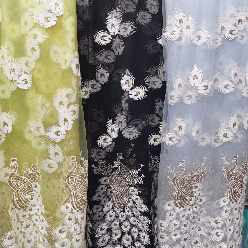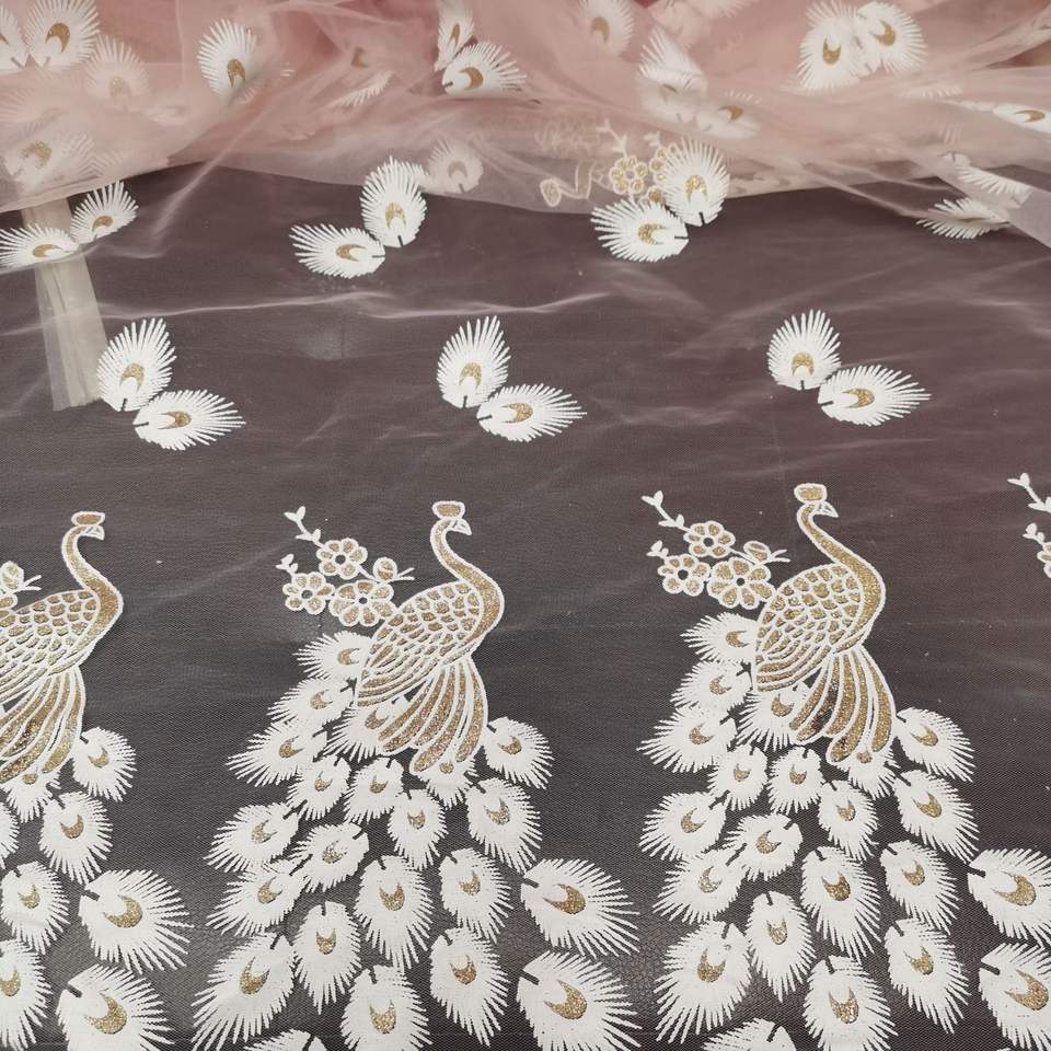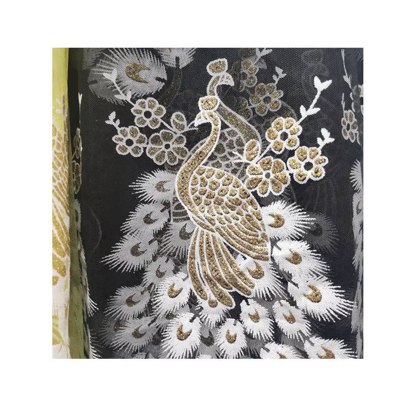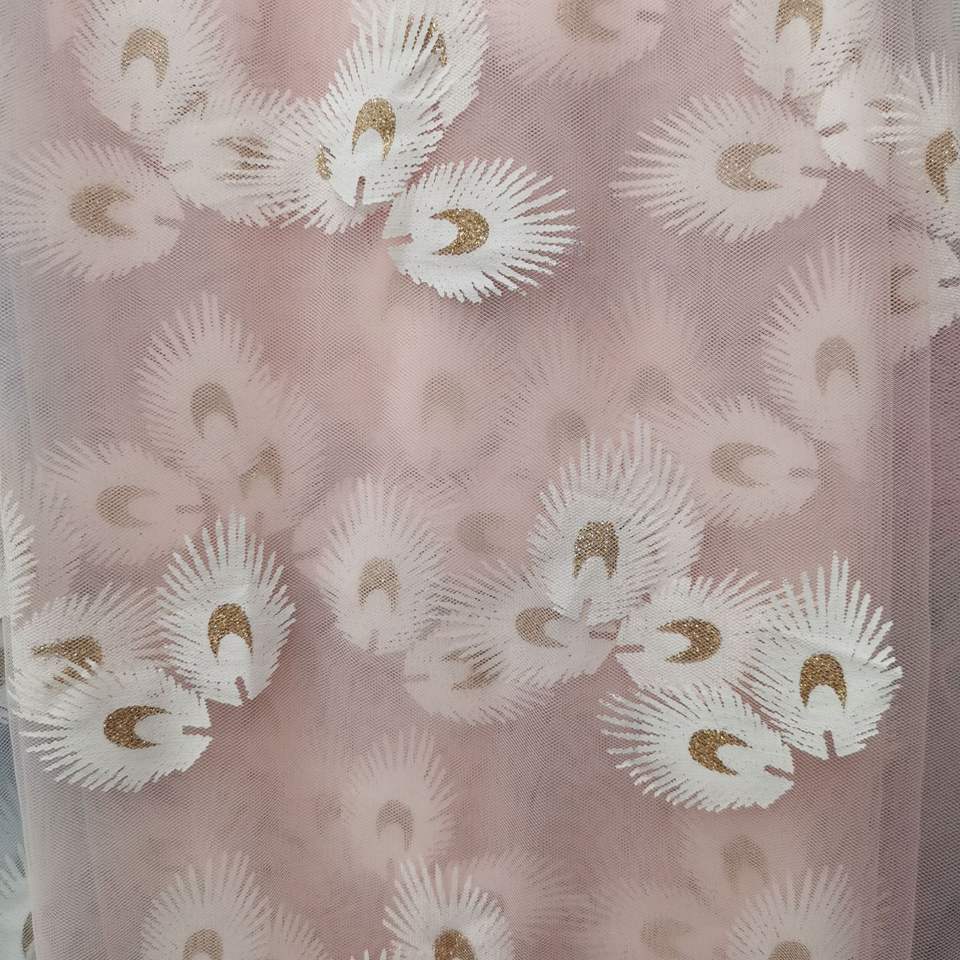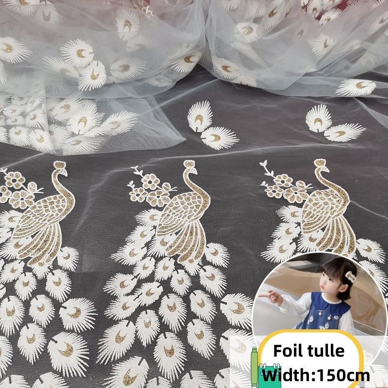 Broderie conception robe tissu paon doré imprimé maille tissu petites filles fraîches robes dentelle impression tissu