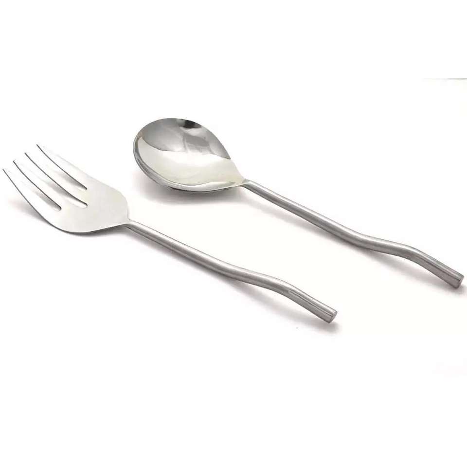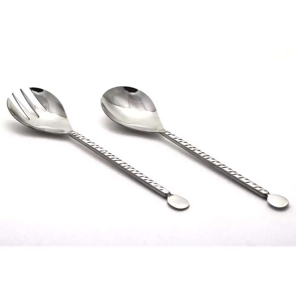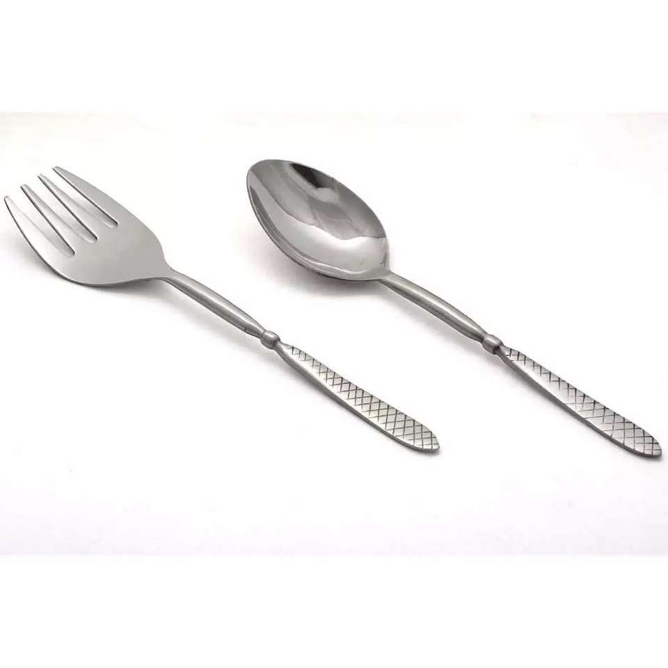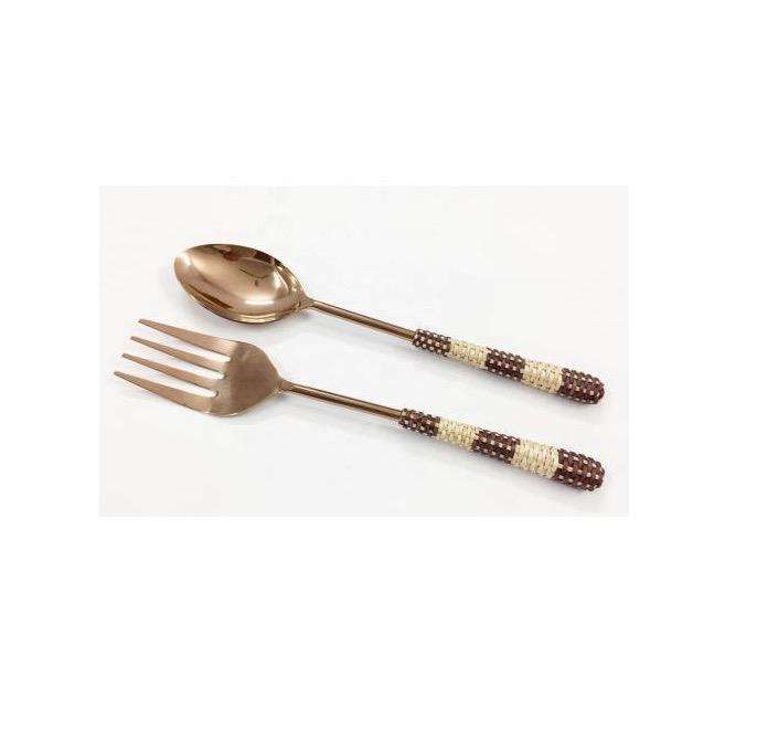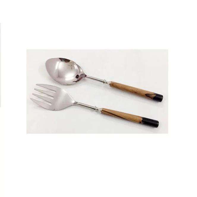 Couverts à salade en métal acier inoxydable, poignée brodée, cuillère de service, cuillère
