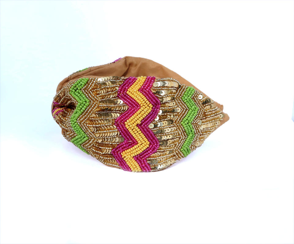 Bandeau en chevron brodé à la main avec des paillettes et des perles, bandeau de luxe pour cheveux, accessoires de mode pour femmes et filles, boutique