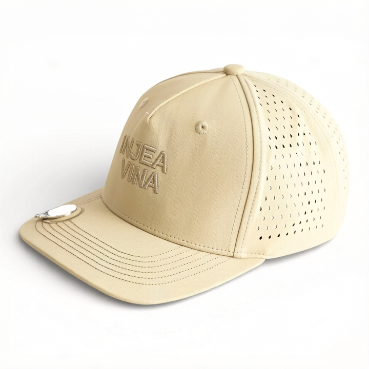 Casquette de baseball personnalisée avec logo brodé découpé au laser, 5 panneaux, snapback, visière incurvée réglable, séchage rapide, OEM ODM, haute qualité