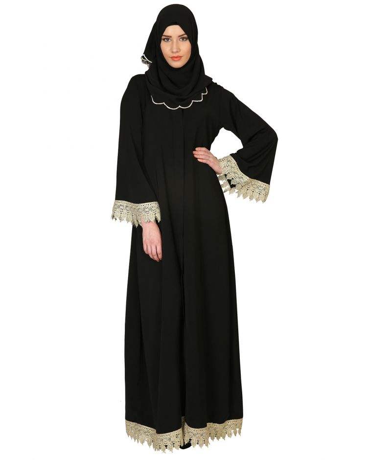 Embroidery Latest Bat Sleeves Black Muslim Girls Abaya