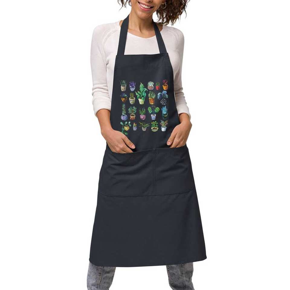 Tablier de cuisine unisexe en denim brodé, idée cadeau pour les cuisiniers amateurs, accessoire de cuisine de qualité professionnelle avec poches de rangement