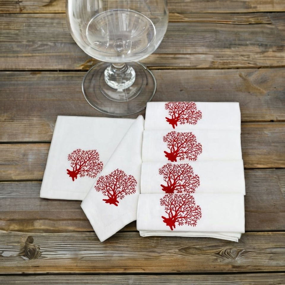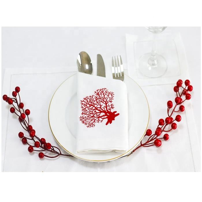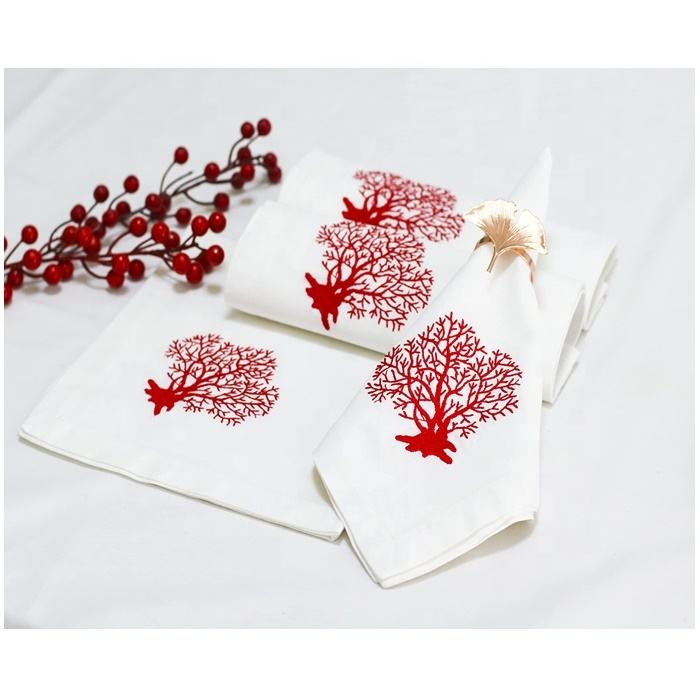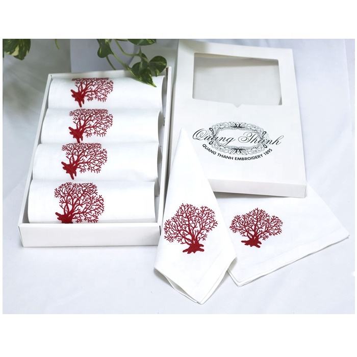 Broderie Rouge Corail Serviette Haute Qualité Coton Dîner Table Serviette Jetable Maison Hôtel Restaurant Quang Thanh Broderie