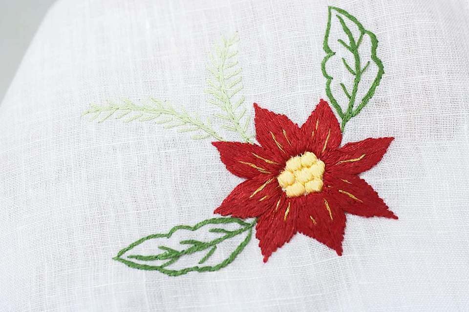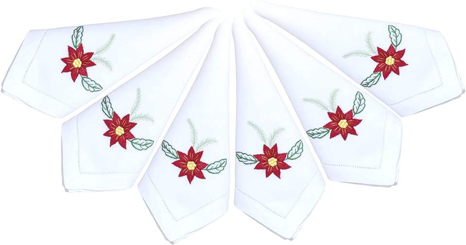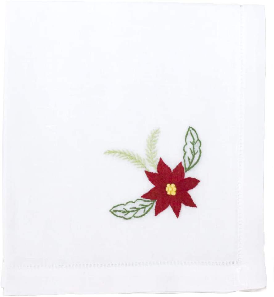 Broderie rouge poinsettia fleur tissu serviette pur lin serviette dîner ourlet serviette de Table pour la maison, hôtel, Restaurant