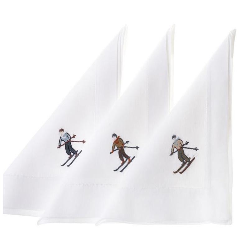 Serviette de Cocktail Design de ski brodé serviette de Cocktail de luxe 100% coton blanc pour Restaurants hôtel événements de fête
