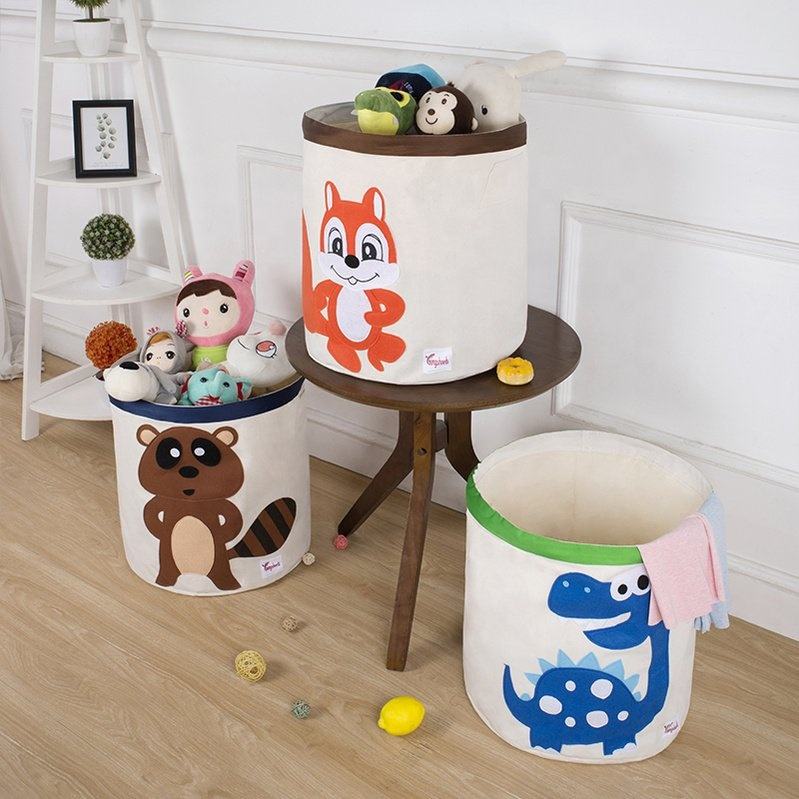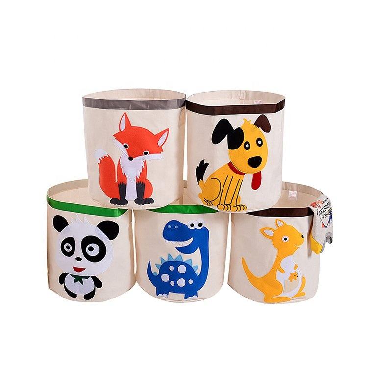 Broderie en trois dimensions dessin animé animaux motifs coton toile étanche et pliable panier à linge panier de rangement