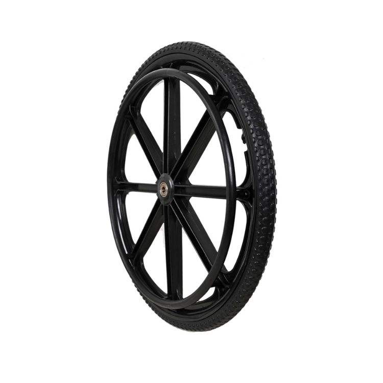 Emco E-24GPU universel 24 pouces roue de remplacement de fauteuil roulant solide en nylon gris durable pneu non marquant léger roulement lisse
