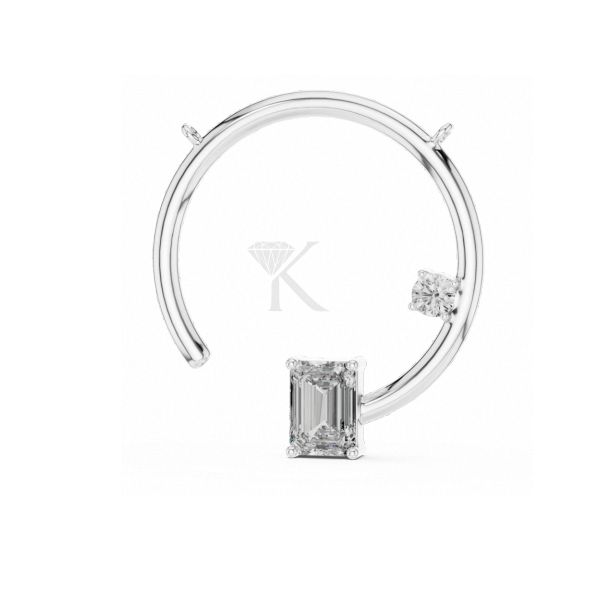 Collier Pendentif Boucle Ouverte en Diamant Naturel Taille Émeraude, Minimaliste et Luxueux, Plaqué Argent, Diamant Flottant, Élégant et Moderne, Finition Fine