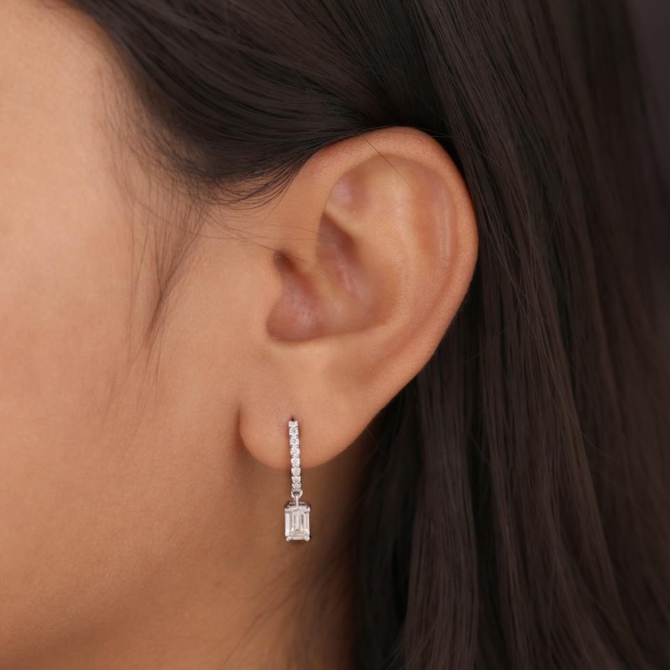 Boucles d'oreilles créoles pendantes en diamant taille émeraude, boucles d'oreilles rectangulaires de luxe en diamant pour femme, boucles d'oreilles créoles minimalistes avec pendentif diamant