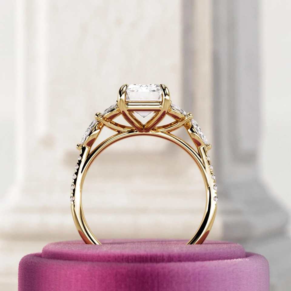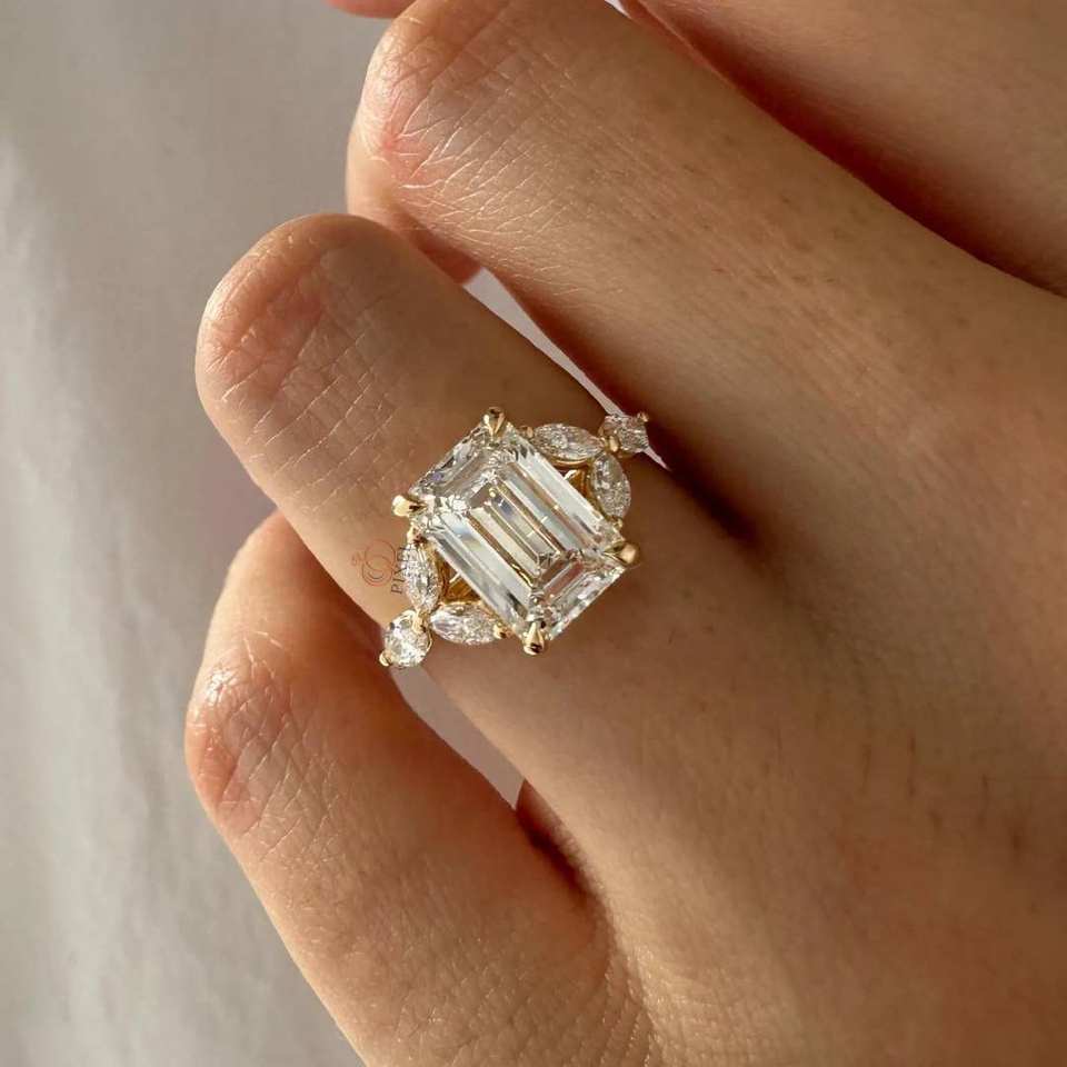 Taille émeraude F VVS2 Lab Grown Diamond Nature Inspired Bague de fiançailles 14k 18k Gold Twig et Leaf Proposition Ring Branch Boho Ring